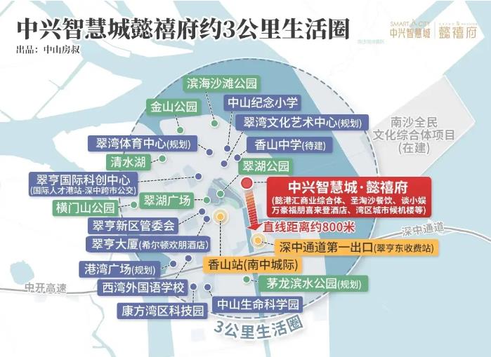 中兴智慧城·懿禧府带装修均价18000元/㎡起。推出建面约88-117平三至四房,使用率极高。项目与深中通道出入口——翠亨东约800米。直白点说,懿禧府业主遛弯的距离,都够来回深中通道出入口好几次了。除了距离深中通道翠亨出入口近外,项目距离在建的南中城际香山站也很近。&...更多>>
